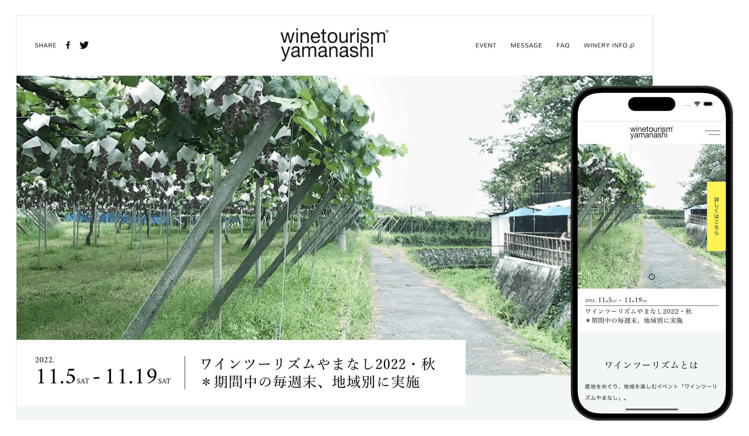 山梨県で開催されているワイナリーを巡るイベント「ワインツーリズムやまなし」のイベント告知サイトの実装を担当させて頂きました。